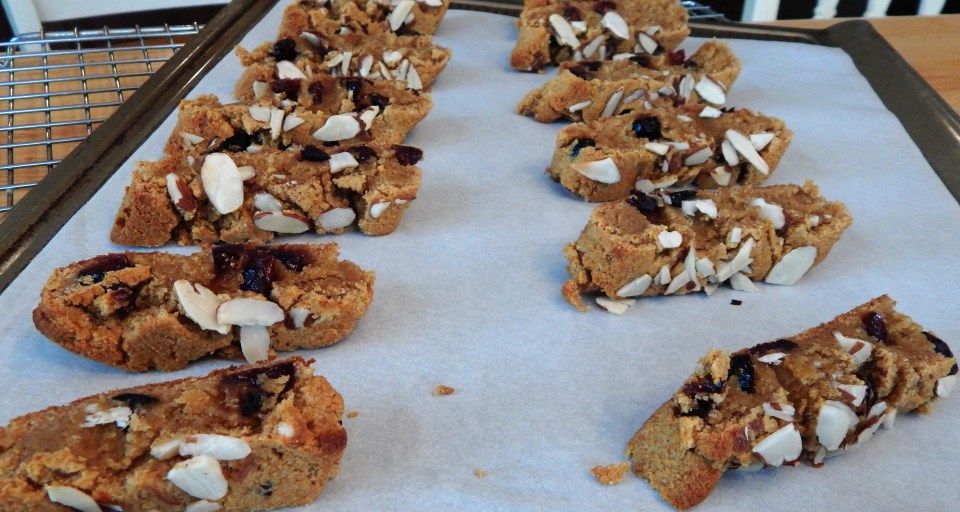 pumpkin cranberry biscotti ready for second bake